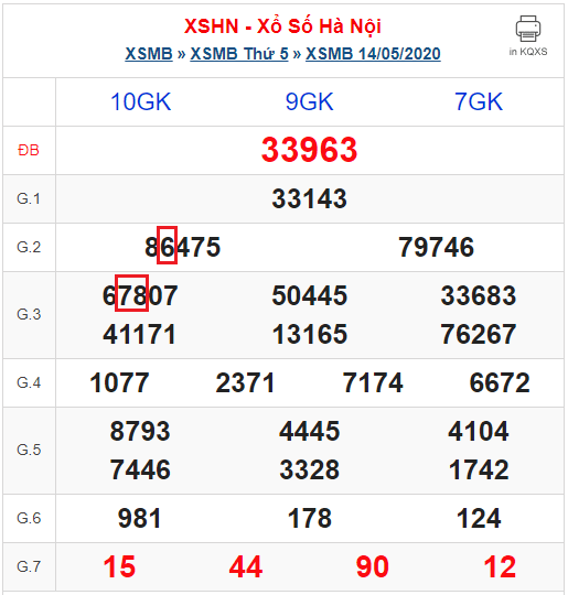Ví dụ chi tiết bằng kết quả xổ số Hà Nội như hình dưới đây: