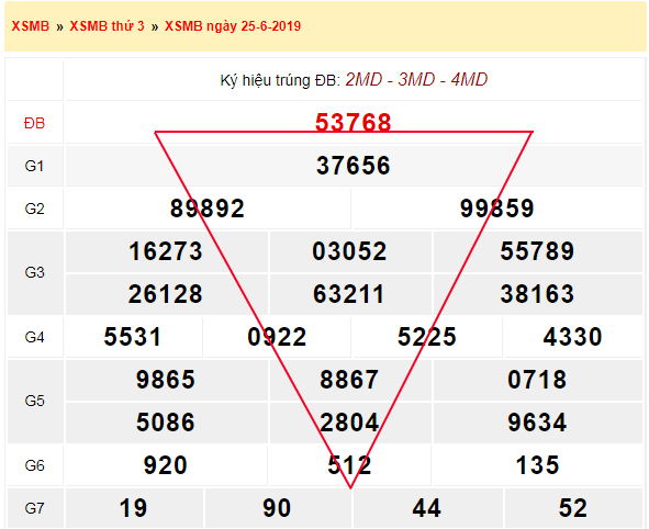 Bước 2: So sánh các con số trong giải đặc biệt và giải nhất để loại bỏ số trùng lặp: 53768 và 37656
